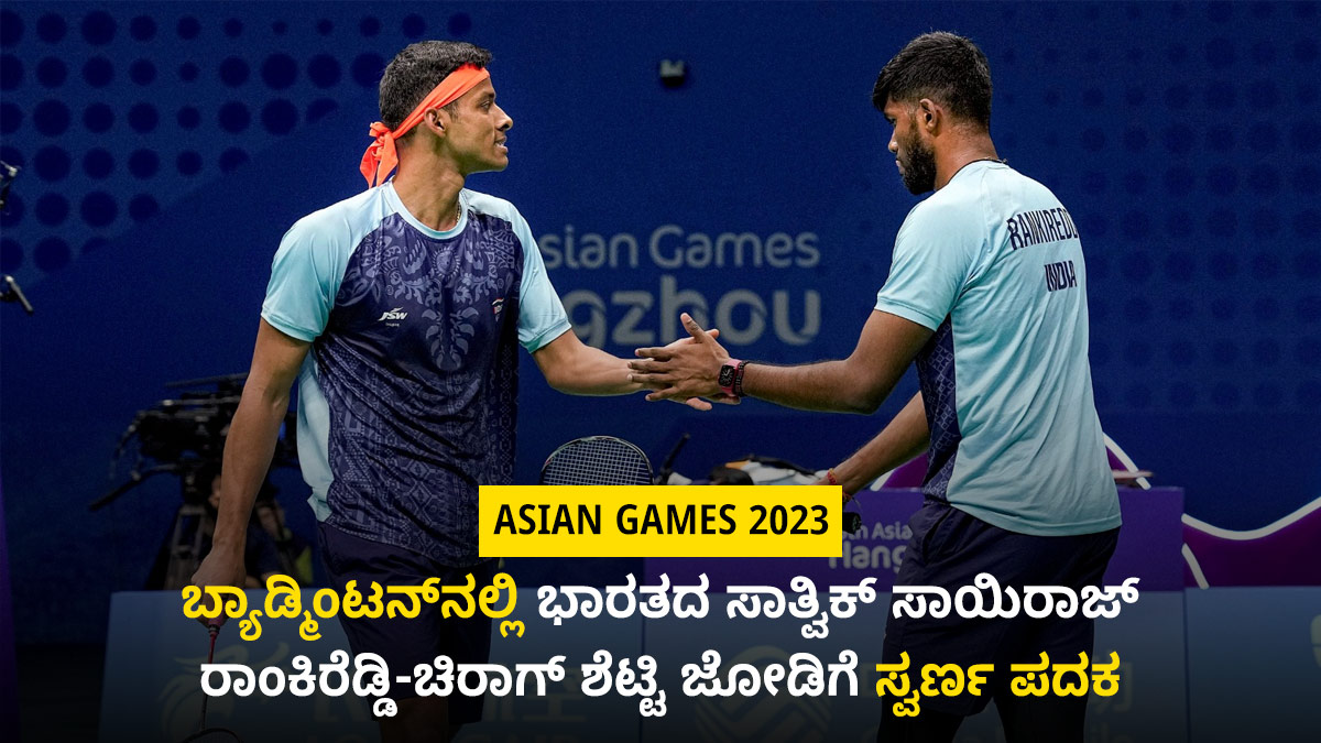 ಶನಿವಾರ, ಅಕ್ಟೋಬರ್ 7ರಂದು ನಡೆದ 2023ರ ಏಷ್ಯನ್ ಗೇಮ್ಸ್ನ ಪುರುಷರ ಬ್ಯಾಡ್ಮಿಂಟನ್ ಡಬಲ್ಸ್ ಫೈನಲ್ನಲ್ಲಿ ಕೊರಿಯಾದ ಜೋಡಿ ವಿರುದ್ಧ ಗೆಲುವು ಸಾಧಿಸಿದ ಭಾರತದ ಚಿರಾಗ್ ಶೆಟ್ಟಿ ಮತ್ತು ಸಾತ್ವಿಕ್ ಸಾಯಿರಾಜ್ ರಾಂಕಿರೆಡ್ಡಿ ಜೋಡಿಯು ಐತಿಹಾಸಿಕ ಚಿನ್ನದ ಪದಕಕ್ಕೆ ಕೊರಳೊಡ್ಡಿದೆ.
