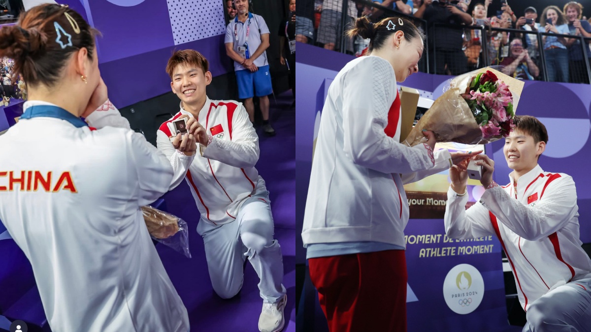 ಇದಾದ ಬಳಿಕ ಚೀನಾದ ಪುರುಷರ ಡಬಲ್ಸ್ ಬ್ಯಾಡ್ಮಿಂಟನ್ ಆಟಗಾರ ಲಿಯು ಯುಚೆನ್ ಅವರು ಮಿಶ್ರ ಡಬಲ್ಸ್ ಆಟಗಾರ್ತಿ ಹುವಾಂಗ್ ಯಾಕಿಯಾಂಗ್ ಅವರಿಗೆ ಪ್ರಪೋಸ್ ಮಾಡಿದ್ದಾರೆ. ಪದಕ ಪ್ರದಾನದ ನಂತರ ಲಿಯು ಹೂಗಳೊಂದಿಗೆ ಹುವಾಂಗ್ಗಾಗಿ ಕಾಯುತ್ತಿದ್ದರು.