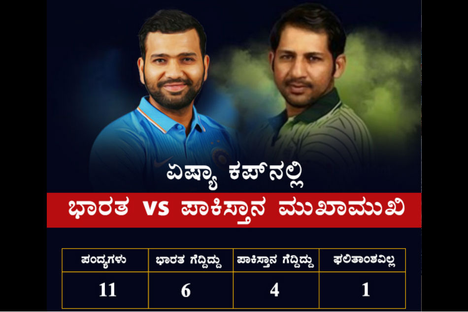 ಏಷ್ಯಾಕಪ್ ಕ್ರಿಕೆಟ್ ನಲ್ಲಿ ಭಾರತ ಮತ್ತು ಪಾಕಿಸ್ತಾನ ತಂಡಗಳು ಒಟ್ಟು 11 ಸಾರಿ ಮುಖಾಮುಖಿಯಾಗಿವೆ. ಇದರಲ್ಲಿ ನೀಲಿಕಲಿಗಳ ಬಳಗ 6 ಬಾರಿ ಪಂದ್ಯ ಗೆದ್ದರೆ, ಹಸಿರು ತಂಡ 4 ಸಾರಿ ಗೆಲುವು ತನ್ನದಾಗಿಸಿಕೊಂಡಿದೆ. ಒಂದು ಪಂದ್ಯ ರದ್ದಾಗಿದ್ದ ದಾಖಲೆ ಈ ಹಿಂದಿನದು.