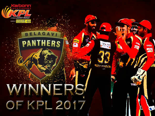 ಇಲ್ಲಿನ ರಾಜನಗರ ಕೆಎಸ್ಸಿಎ ಮೈದಾನದಲ್ಲಿ ಶನಿವಾರ ನಡೆದ ಫೈನಲ್ ಪಂದ್ಯದಲ್ಲಿ 142ರನ್ಗಳ ಗುರಿ ಪಡೆದ ಎಸ್. ಅರವಿಂದ್ ನಾಯಕತ್ವದ ಬೆಳಗಾವಿ ಪ್ಯಾಂಥರ್ಸ್ ತಂಡವು 17.3 ಓವರ್ಗಳಲ್ಲಿ 4 ವಿಕೆಟ್ಗೆ 145ರನ್ ಗಳಿಸಿ ಗೆಲುವು ದಾಖಲಿಸಿತು. ಎರಡು ಬಾರಿ ರನ್ನರ್ ಅಪ್ ತಂಡವಾಗಿದ್ದ ಬೆಳಗಾವಿ ಈ ಬಾರಿ ಪ್ರಶಸ್ತಿಗೆ ಮುತ್ತಿಟ್ಟಿದೆ.