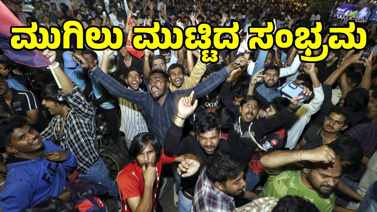 ಆರ್ಸಿಬಿ ತಂಡದ ನಾಯಕ ರಜತ್ ಪಾಟಿದಾರ್ ಮುಶೀರ್ ಖಾನ್ ಎತೆದಲ್ಲಿ ಡೀಪ್ ಮಿಡ್ ವಿಕೆಟ್ ಮೇಲೆ ಸಿಕ್ಸರ್ ಬಾರಿಸುತ್ತಿದ್ದಂತೆ ಸಂಭ್ರಮಾಚರಣೆ ಮುಗಿಲು ಮುಟ್ಟಿತ್ತು. ಅಷ್ಟೊತ್ತು ಟಿವಿ ಸೆಟ್ಗಳ ಮುಂದೆ ಕುಳಿತು ಮ್ಯಾಚ್ ಆನಂದಿಸುತ್ತಿದ್ದ ಆರ್ಸಿಬಿ ಫ್ಯಾನ್ಸ್, ಸಂಭ್ರಮಾಚರಣೆ ತಡೆಯದೇ ಬೀದಿಗೆ ಇಳಿದು ಡ್ಯಾನ್ಸ್ ಮಾಡಿದರು. ಈ ವೇಳೆ ಅಭಿಮಾನಿಗಳು ಪಟಾಕಿ ಹೊಡೆದು ಸಂಭ್ರಮಿಸಿದರು. ಈ ಮೂಲಕ 17 ವರ್ಷಗಳಿಂದ ಮಾಯಾಜಿಂಕೆಯಂತೆ ಕಾಡಿದ ಕಪ್ ಎತ್ತುವ ಕನಸು ಈಗ ಹತ್ತಿದ ಬಂದು ನಿಂತಿದೆ.