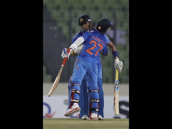 ಉತ್ತಪ್ಪ ಹಾಗೂ ರಹಾನೆ ಬಿರುಸಿನ ಆಟಕ್ಕೆ ಬಾಂಗ್ಲಾ ಬೌಲರ್ ಗಳ ಬಳಿ ಉತ್ತರವಿರಲಿಲ್ಲ. ಅಜಿಂಕಯ ರಹಾನೆ 64 ರನ್ (70 ಎ, 5 ಬೌಂ,2 ಸಿಕ್ಸರ್) ಗಳಿಸಿ ಪಂದ್ಯಶ್ರೇಷ್ಠ ಪ್ರಶಸ್ತಿ ಗಳಿಸಿದರು. 16.1 ಓವರ್ ಗಳಲ್ಲಿ ಈ ಜೋಡಿ 99 ರನ್ ಪೇರಿಸಿದ್ದು ಭಾರತದ ರನ್ ಚೇಸಿಂಗ್ ಸುಲಭ ಮಾಡಿತು.