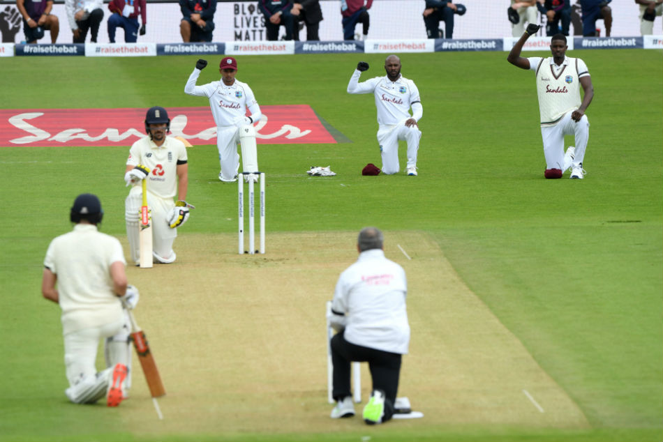 ಮಳೆಯಿಂದಾಗಿ ತಡವಾಗಿ ಪಂದ್ಯ ಆರಂಭವಾದ ಬಳಿಕ ಅಂಗಳಕ್ಕಿಳಿದ ಫೀಲ್ಡಿಂಗ್ ಮಾಡುತ್ತಿರುವ ವೆಸ್ಟ್ ಇಂಡೀಸ್ ತಂಡದ ಎಲ್ಲಾ ಆಟಗಾರರ ಜೊತೆಗೆ ಇಂಗ್ಲಂಡ್ ತಂಡದ ಆರಂಭಿಕ ಆಟಗಾರು ಕೂಡ ತಮ್ಮ ಮೊಣಕಾಲನ್ನು ನೆಲಕ್ಕೆ ಬಾಗಿಸಿ ಈ ಹೋರಾಟಕ್ಕೆ ಬೆಂಬಲಿಸಿದರು. ಅಂಪೈರ್ ಬೌಂಡರಿ ಲೈನ್ ಆಚೆಗಿದ್ದ ಇತರ ಆಟಗಾರರು ಹಾಗೂ ಸಿಬ್ಬಂದಿಗಳು ಕೂಡ ಇದೇ ರೀತಿ ತಮ್ಮ ಬೆಂಬಲವನ್ನು ವ್ಯಕ್ತ ಪಡಿಸಿದ್ದಾರೆ.