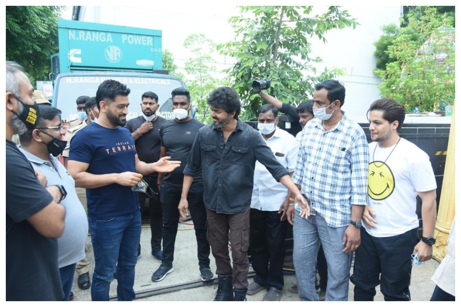 ಚಿತ್ರೀಕರಣ ಸೆಟ್ಗೆ ಬಂದ ಧೋನಿಯನ್ನು ದಳಪತಿ ವಿಜಯ್ ಆತ್ಮೀಯವಾಗಿ ಸ್ವಾಗತ ಮಾಡಿದ್ದಾರೆ. ಬಳಿಕ ವಿಜಯ್, ಧೋನಿಯನ್ನು ತನ್ನ ವ್ಯಾನಿಟ್ ವ್ಯಾನ್ ಒಳಗೆ ಕರೆದುಕೊಂಡು ಹೋಗಿ ಕೆಲವು ಸಮಯ ಮಾತುಕತೆ ನಡೆಸಿದ್ದಾರೆ. ಧೋನಿ ಸೆಟ್ ಗೆ ಭೇಟಿ ನೀಡಿರುವ ಫೋಟೋ ಮತ್ತು ವಿಜಯ್ ಜೊತೆ ಮಾತುಕತೆ ನಡೆಸುತ್ತಿರುವ ಫೋಟೋಗಳು ಸಾಮಾಜಿಕ ಜಾಲತಾಣದಲ್ಲಿ ಸಿಕ್ಕಾಪಟ್ಟೆ ವೈರಲ್ ಆಗಿದ್ದು ಟ್ವಿಟ್ಟರ್ ನಲ್ಲಿ ವಿಜಯ್ ಟ್ರೆಂಡಿಂಗ್ನಲ್ಲಿದ್ದಾರೆ.