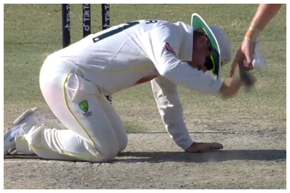 ಟೆಸ್ಟ್ ಪಂದ್ಯದ ಕೊನೆಯ ದಿನ ಪಾಕಿಸ್ತಾನ ಮತ್ತು ಆಸ್ಟ್ರೇಲಿಯಾ ನಡುವೆ ಕುತೂಹಲಕಾರಿ ಹೋರಾಟ ನಡೆದಿದೆ. ಆದರೆ, ಆಸ್ಟ್ರೇಲಿಯದ ಬೌಲರ್ಗಳು ಬೌಲಿಂಗ್ ಮಾಡುತ್ತಿದ್ದಂತೆ ಪಿಚ್ ಸ್ವಲ್ಪ ಎಡವಟ್ಟಾಯಿತು. ಬೌಲ್ ಮಾಡಲು ಓಡಿ ಸ್ಟಂಪ್ ಬಳಿ ಕಾಲುಗಳನ್ನು ಇಡುವಾಗ ಪಿಚ್ ಸ್ವಲ್ಪ ವ್ಯತ್ಯಾಸವಾದಂತಿತ್ತು. ಇದರಿಂದ ಬೌಲರ್ಗಳಿಗೆ ಬೌಲಿಂಗ್ ಮಾಡಲು ಕಷ್ಟವಾಯಿತು.