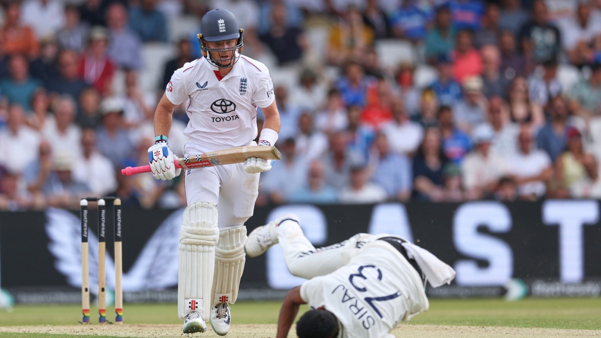 ಓಲಿ ಪೋಪ್ ಅಮೋಘ ಬ್ಯಾಟಿಂಗ್ ಪ್ರದರ್ಶನ ನೀಡಿದರು. ಇವರು 131 ಎಸೆತಗಳಲ್ಲಿ 13 ಬೌಂಡರಿ ನೆರವಿನಿಂದ ಅಜೇಯ 100 ರನ್ ಬಾರಿಸಿ ಮೂರನೇ ದಿನಕ್ಕೆ ಬ್ಯಾಟಿಂಗ್ಗೆ ಕಾಯ್ದುಕೊಂಡಿದ್ದರು. ಇಂಗ್ಲೆಂಡ್ ತಂಡದ ಮಧ್ಯಮ ಕ್ರಮಾಂಕದ ಹ್ಯಾರಿ ಬ್ರೂಕ್ ಭಾನುವಾರಕ್ಕೆ ಬ್ಯಾಟಿಂಗ್ ಕಾಯ್ದುಕೊಂಡಿದ್ದಾರೆ.