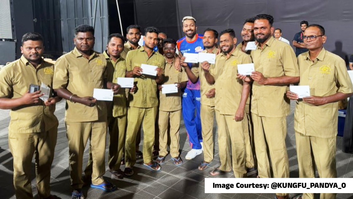 ಹಾರ್ದಿಕ್ ಪಾಂಡ್ಯ ಮೈದಾನದಲ್ಲಿ ತಮ್ಮ ಭರ್ಜರಿ ಆಟದ ಮೂಲಕ ಹೆಸರುವಾಸಿ. ಬಿಗ್ ಸಿಕ್ಸರ್ಗಳನ್ನು ಬಾರಿಸುವುದು ಬಿಗುವಿನ ದಾಳಿ ನಡೆಸುವುದು ಹಾರ್ದಿಕ್ ಅವರ ಸ್ಟ್ರೆಂತ್. ಆದರೆ ಐಪಿಎಲ್ ಆರಂಭಕ್ಕೂ ಮುನ್ನ ಹಾರ್ದಿಕ್ ಪಾಂಡ್ಯ ಮುಂಬೈ ವಾಂಖೆಡೆ ಮೈದಾನದ ಸಿಬ್ಬಂದಿಗಳೊಂದಿಗೆ ಚೆಕ್ ಹಿಡಿದುಕೊಂಡು ಫೋಟೋಗೆ ಪೋಸ್ ನೀಡಿದ್ದು ಸಖತ್ ಸದ್ದು ಮಾಡುತ್ತಿದೆ. ಹಾರ್ದಿಕ್ ಮೈದಾನದ ಸಿಬ್ಬಂದಿಗೆ ಹಣ ನೀಡಿದ್ದು ಏಕೆ ಎಂಬ ಪ್ರಶ್ನೆ ಉದ್ಭವಿಸುತ್ತದೆ. ಅದಕ್ಕೆ ಉತ್ತರ ಇಲ್ಲಿದೆ.