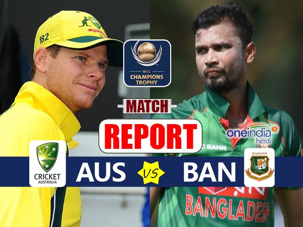 183ರನ್ ಗುರಿ ಬೆನ್ನು ಹತ್ತಿದ ಆಸ್ಟ್ರೇಲಿಯಾ ತಂಡ 16 ಓವರ್ ಗಳಲ್ಲಿ 83/1 ಗಳಿಸಿದ್ದಾಗ ಮಳೆ ಕಾರಣ ಪಂದ್ಯ ರದ್ದಾಯಿತು. ಉಭಯ ತಂಡಗಳಿಗೂ ಒಂದೊಂದು ಅಂಕ ನೀಡಲಾಯಿತು. ಮಿಚೆಲ್ ಸ್ಟಾರ್ಕ್ 5 ಎಸೆತಗಳಲ್ಲಿ ಮೂರು ವಿಕೆಟ್ ಗಳಿಸಿದ್ದು, 114 ಎಸೆತಗಳಲ್ಲಿ ತಮೀಮ್ ಇಕ್ಬಾಲ್ ಅವರು 95ರನ್ ಚೆಚ್ಚಿದ್ದು ಪಂದ್ಯದ ಮುಖ್ಯಾಂಶವಾಗಿದೆ.