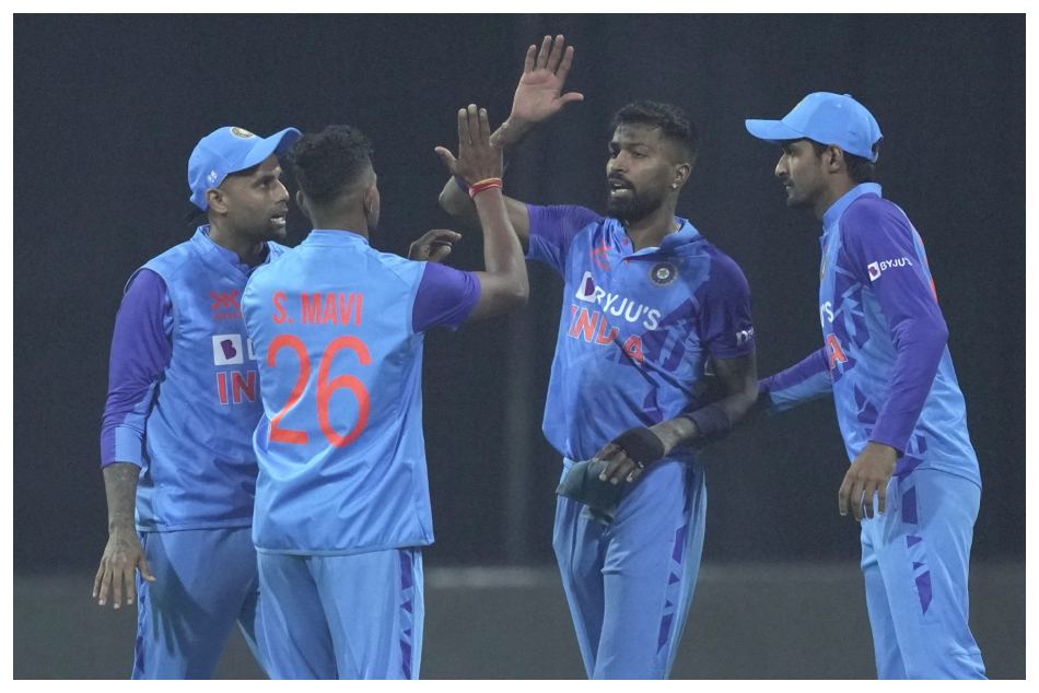 ಭಾರತ ತಂಡ: ಇಶಾನ್ ಕಿಶನ್(ವಿಕೆಟ್ ಕೀಪರ್), ಶುಬ್ಮನ್ ಗಿಲ್, ಸೂರ್ಯಕುಮಾರ್ ಯಾದವ್, ಹಾರ್ದಿಕ್ ಪಾಂಡ್ಯ(ನಾಯಕ), ದೀಪಕ್ ಹೂಡಾ, ಅಕ್ಸರ್ ಪಟೇಲ್, ಹರ್ಷಲ್ ಪಟೇಲ್, ಶಿವಂ ಮಾವಿ, ಉಮ್ರಾನ್ ಮಲಿಕ್, ಯುಜ್ವೇಂದ್ರ ಚಹಾಲ್, ಮುಖೇಶ್ ಕುಮಾರ್, ಅರ್ಷದೀಪ್ ಸಿಂಗ್, ಋತುರಾಜ್ ಗಾಯಕ್ವಾಡ್, ವಾಷಿಂಗ್ಟನ್ ಸುಂದರ್, ರಾಹುಲ್ ತ್ರಿಪಾಠಿ, ಜಿತೇಶ್ ಶರ್ಮಾ