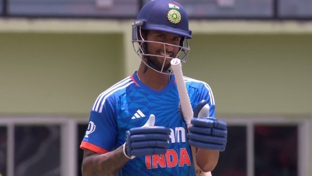 ಅಲ್ಜಾರಿ ಜೋಸೆಫ್ ಎಸೆತದಲ್ಲಿ ಥರ್ಡ್ ಮ್ಯಾನ್ನಲ್ಲಿ ಶುಭ್ಮನ್ ಗಿಲ್ ಅವರ ಕ್ಯಾಚ್ ಪಡೆದ ನಂತರ ತಿಲಕ್ ವರ್ಮಾ ನಾಲ್ಕನೇ ಓವರ್ನಲ್ಲಿ ಮೈದಾನಕ್ಕೆ ಬಂದರು ಮತ್ತು ಸೂರ್ಯಕುಮಾರ್ ಯಾದವ್ ತಮ್ಮ 50ನೇ ಟಿ20 ಪಂದ್ಯವನ್ನು ಆಡುತ್ತಿರುವಾಗ, ಕೈಲ್ ಮೇಯರ್ಸ್ ಅವರ ಥ್ರೋನಿಂದ ರನೌಟ್ ಆಗಿ 18 ರನ್ಗಳಾಗಿದ್ದಾಗ ಪೆವಿಲಿಯನ್ ಸೇರಿದರು.