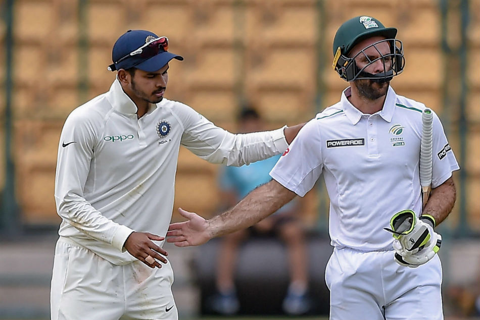 ಭಾರತ ಎ: 345 & 181/4 (51) ಶ್ರೇಯಸ್ ಅಯ್ಯರ್ 65, ಅಂಕಿತ್ ಭಾವ್ನೆ 64*, ಮಯಂಕ್ ಅಗರ್ವಾಲ್ 28. ಡುಯನ್ನೆ ಒಲಿವರ್ 24/2, ಸೆನುರನ್ ಮುತ್ತುಸ್ವಾಮಿ 45/2