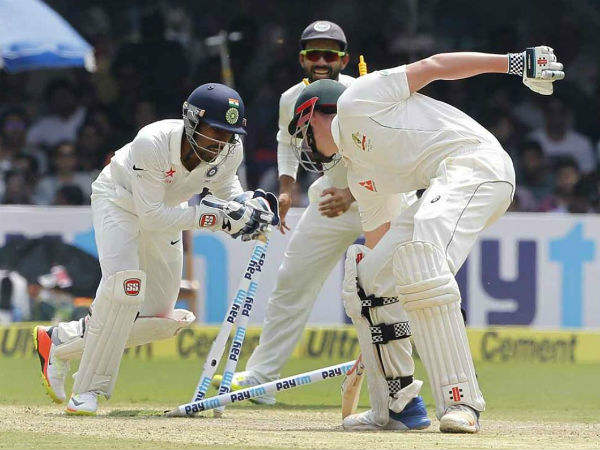 (ಕೆಎಲ್ ರಾಹುಲ್ 90, ಕರುಣ್ ನಾಯರ್ 26, ಅಜಿಂಕ್ಯ ರಹಾನೆ 17, ಚೇತೇಶ್ವರ್ ಪೂಜಾರ 17 ರನ್ - ನೇಥನ್ ಲಯಾನ್ 50/8)