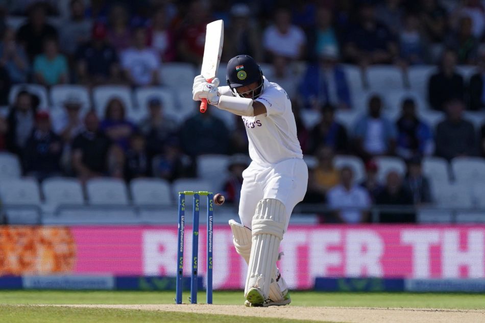 ನಾಲ್ಕನೇ ಟೆಸ್ಟ್ ಪಂದ್ಯದಲ್ಲಿ ಭಾರತದ ಮೊದಲನೇ ಇನ್ನಿಂಗ್ಸ್ನಲ್ಲಿ ಮೂರನೇ ಕ್ರಮಾಂಕದಲ್ಲಿ ಬ್ಯಾಟಿಂಗ್ಗೆ ಬಂದಿದ್ದ ಚೇತೇಶ್ವರ್ ಪೂಜಾರ ಅವರು ಆಂಗ್ಲ ವೇಗಿ ಜೇಮ್ಸ್ ಆ್ಯಂಡರ್ಸನ್ ಅವರ 19.4ನೇ ಓವರ್ನಲ್ಲಿ 4 ರನ್ ಬಾರಿಸಿ ಔಟಾದರು. ಆ್ಯಂಡರ್ಸನ್ ಎಸೆತಕ್ಕೆ ವಿಕೆಟ್ ಕೀಪರ್ ಜಾನಿ ಬೇರ್ಸ್ಟೋವ್ ಗೆ ಕ್ಯಾಚಿತ್ತು ಪೂಜಾರ ನಿರ್ಗಮಿಸಿದ್ದರು.
