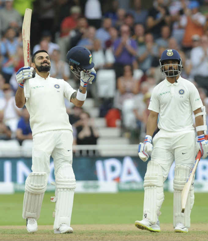 ಮೊದಲ ಇನ್ನಿಂಗ್ಸ್ನಲ್ಲಿ ಕೊಹ್ಲಿ ಕೇವಲ ಮೂರು ರನ್ಗಳಿಂದ ಶತಕ ತಪ್ಪಿಸಿಕೊಂಡಿದ್ದರು. ಆದರೆ, ಎರಡನೆಯ ಇನ್ನಿಂಗ್ಸ್ನಲ್ಲಿ ಶತಕ ಗಳಿಸಲು ಇಂಗ್ಲೆಂಡ್ ಫೀಲ್ಡರ್ ಜೆನ್ನಿಂಗ್ಸ್ ನೆರವಾದರು. 93 ರನ್ ಗಳಿಸಿದ್ದ ಕೊಹ್ಲಿ, ಆಂಡರ್ಸನ್ ಬೌಲಿಂಗ್ನಲ್ಲಿ ನೀಡಿದ ಸುಲಭದ ಕ್ಯಾಚ್ಅನ್ನು ಗಲ್ಲಿಯಲ್ಲಿದ್ದ ಜೆನ್ನಿಂಗ್ಸ್ ಕೈಚೆಲ್ಲಿದರು.