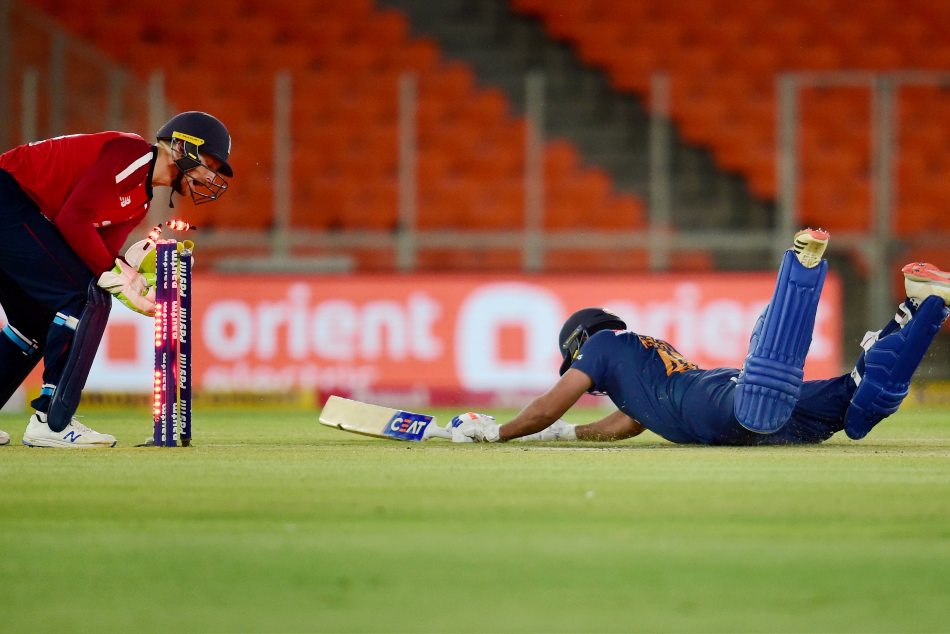 ಭಾರತದ ಇನ್ನಿಂಗ್ಸ್ನ 13.2ನೇ ಓವರ್ನಲ್ಲಿ ಸ್ಯಾಮ್ ಕರನ್ ಎಸೆತಕ್ಕೆ ಯಾದವ್ ಬ್ಯಾಟ್ ತಾಗಿ ಚಿಮ್ಮಿದ ಚೆಂಡನ್ನು ಡೇವಿಡ್ ಮಲಾನ್ ಡೈವ್ ಮಾಡಿ ಕ್ಯಾಚ್ ಮಾಡಿದರು. ಆದರೆ ಮಲಾನ್ ಹಿಡಿದ ಕ್ಯಾಚ್ ಅನುಮಾನಾಸ್ಪದವಾಗಿತ್ತು. ಚೆಂಡು ನೆಲಕ್ಕೆ ತಾಗಿದಂತೆ ಕಾಣಿಸುತ್ತಿತ್ತು. ಇದನ್ನು ಪರಿಶೀಲಿಸಿದ ಥರ್ಡ್ ಅಂಪೈರ್ ಕೂಡ ಅದನ್ನು ಔಟ್ ಎಂದು ಅಂತಿಮವಾಗಿ ತೀರ್ಪಿತ್ತಿದ್ದರು. ಇದು ವಿವಾದಕ್ಕೆ ಕಾರಣವಾಗಿದೆ.