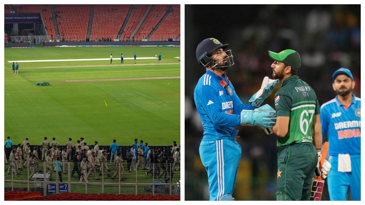 ಅಕ್ಟೋಬರ್ 14ರಂದು ನಡೆಯಲಿರುವ ಭಾರತ ಹಾಗೂ ಪಾಕಿಸ್ತಾನ ತಂಡಗಖ ನಡುವಿನ ಮಹು ನಿರೀಕ್ಷಿತ ಪಂದ್ಯಕ್ಕೆ ಸಣ್ಣ ಪ್ರಮಾಣದಲ್ಲಿ ಮಳೆ ಅಡ್ಡಿಯುಂಟು ಮಾಡಿದರೆ ಅಚ್ಚರಿಯಿಲ್ಲ ಎನ್ನುತ್ತಿವೆ ಹವಾಮಾನ ಇಲಾಖೆಯ ಮುನ್ಸೂಚನೆಗಳು. ಇಂಡಿಯಾ ಮೆಟರಲಾಜಿಕಲ್ ಡಿಪಾರ್ಟ್ಮೆಂಟ್ ವರದಿಯ ಪ್ರಕಾರ ಪಂದ್ಯದ ದಿನವಾದ ಶನಿವಾರ ಅಹ್ಮದಾಬಾದ್ ನಗರದಲ್ಲಿ ಸಣ್ಣ ಪ್ರಮಾಣದಲ್ಲಿ ಮಳೆಯಾಗುವ ನಿರೀಕ್ಷೆಯಿದೆ.