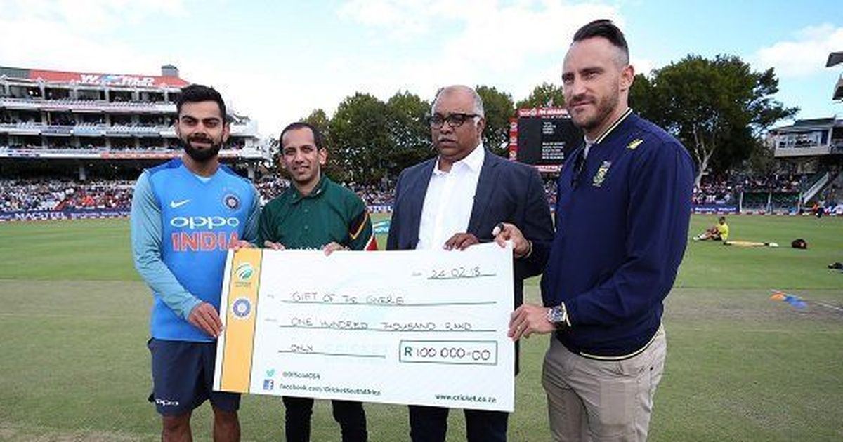 ಕೇಪ್ಟೌನ್ ನಗರದಲ್ಲಿ ನೀರಿನ ಬಾಟಲಿಗಾಗಿ ಹಾಗೂ ಕೊಳವೆ ಬಾವಿ ತೋಡಿಸಲೆಂದು ಭಾರತ ಕ್ರಿಕೆಟ್ ತಂಡ 'ದಿ ಗಿಫ್ಟ್ ಆಫ್ ಗಿವರ್ಸ್' ಪ್ರತಿಷ್ಠಾನಕ್ಕೆ 5.5 ಲಕ್ಷ ರೂಪಾಯಿ ಧನಸಹಾಯ ಮಾಡಿದೆ. ದ.ಆಫ್ರಿಕಾ ತಂಡದ ನಾಯಕ ಫಾಪ್ ಡು ಪ್ಲಿಸಿಸ್ ಸಹ ತಮ್ಮ ತಂಡದ ಪರವಾಗಿ ದೇಣಿಗೆ ನೀಡಿದ್ದಾರೆ.