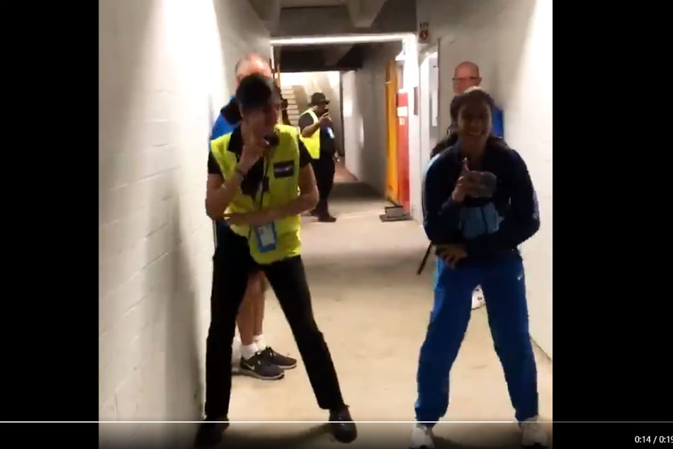 Busting moves with an off-duty security guard at the #T20WorldCup pic.twitter.com/ehUdGQc3QV