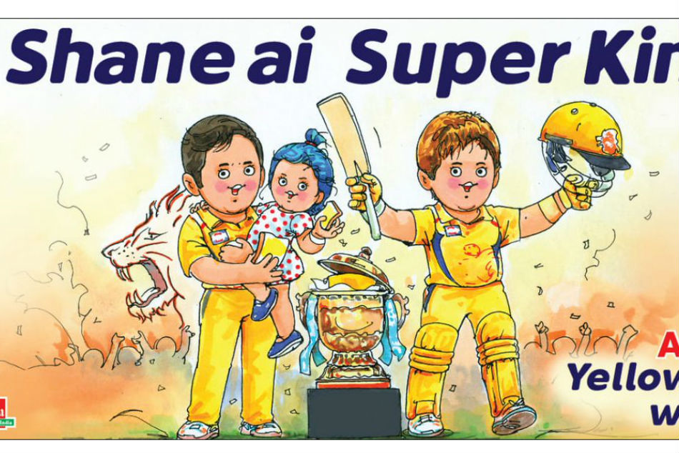 ನವದೆಹಲಿ, ಮೇ 29: ಐಪಿಎಲ್ ಫೈನಲ್ ನಲ್ಲಿ ಹೈದರಾಬಾದ್ ವಿರುದ್ಧ ಚೆನ್ನೈ ಸೂಪರ್ ಕಿಂಗ್ಸ್ 8 ವಿಕೆಟ್ ಭರ್ಜರಿ ಜಯ ಸಾಧಿಸಿತ್ತು. ಸಿಎಸ್ಕೆಯ ಈ ಭರ್ಜರಿ ಗೆಲುವು ಈಗ ಅಮೂಲ್ ಕಂಪನಿಯ ಚಿತ್ರವಾಗಿಯೂ ಹೊರಹೊಮ್ಮಿದೆ.