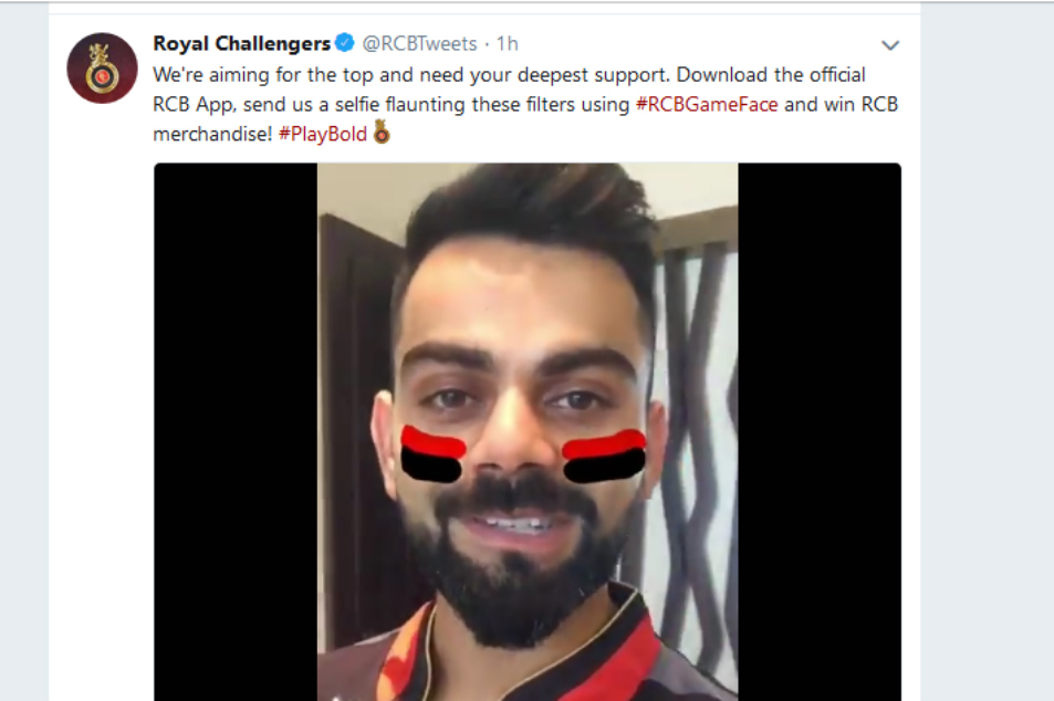 ರಾಯಲ್ ಚಾಲೆಂಜರ್ಸ್ ಬೆಂಗಳೂರು (@RCBTweets) ತಂಡದ ಅಧಿಕೃತ ಹ್ಯಾಶ್ ಟ್ಯಾಗ್ #PlayBold