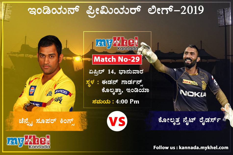 ಕೋಲ್ಕತ್ತಾ, ಏಪ್ರಿಲ್ 14: ಇಂಡಿಯನ್ ಪ್ರೀಮಿಯರ್ ಲೀಗ್ (ಐಪಿಎಲ್) 2019ರ ಮಾಜಿ ಚಾಂಪಿಯನ್ ಕೋಲ್ಕತ್ತಾ ನೈಟ್ ರೈಡರ್ಸ್ ಹಾಗೂ ಹಾಲಿ ಚಾಂಪಿಯನ್ಸ್ ಚೆನ್ನೈ ಸೂಪರ್ ಕಿಂಗ್ಸ್ ನಡುವೆ ಬಿರುಸಿನ ಹಣಾಹಣಿ ನಿರೀಕ್ಷೆ ಮೂಡಿದೆ.