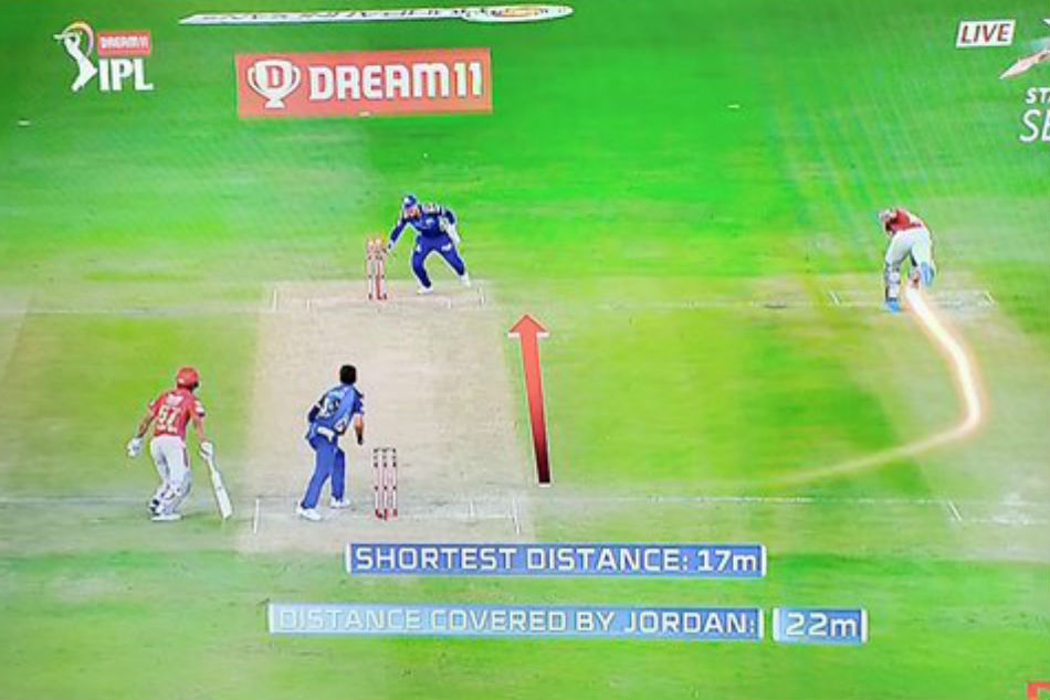 ಆವತ್ತಿನ ಪಂದ್ಯದಲ್ಲಿ ಮೊದಲು ಬ್ಯಾಟಿಂಗ್ ಮಾಡಿದ್ದ ಮುಂಬೈ ಇಂಡಿಯನ್ಸ್ 176 ರನ್ ಬಾರಿಸಿದ್ದರೆ ಕಿಂಗ್ಸ್ 11 ಪಂಜಾಬ್ ಕೂಡ 176 ರನ್ ಬಾರಿಸಿ ಪಂದ್ಯವನ್ನು ಟೈ ಮಾಡಿಕೊಂಡಿತ್ತು. ಈ ವೇಳೆ ಪಂಜಾಬ್ ಬ್ಯಾಟ್ಸ್ಮನ್ ಕ್ರಿಸ್ ಜೋರ್ಡನ್ ರನ್ಔಟ್ಗಾಗಿ ಗಮನ ಸೆಳೆದಿದ್ದರು.