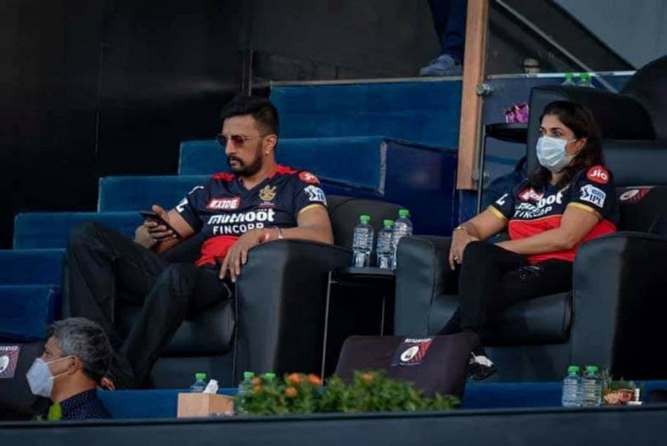 ಇದಾದ ಬಳಿಕ ಸೆಪ್ಟೆಂಬರ್ 21ರ ಸೋಮವಾರದಂದು ಅಬುಧಾಬಿಯ ಶೈಖ್ ಜಾಯೆದ್ ಕ್ರೀಡಾಂಗಣದಲ್ಲಿ ರಾಯಲ್ ಚಾಲೆಂಜರ್ಸ್ ಬೆಂಗಳೂರು ಮತ್ತು ಕೊಲ್ಕತ್ತಾ ನೈಟ್ ರೈಡರ್ಸ್ ನಡುವಿನ ಪಂದ್ಯ ನಡೆಯಿತು. ಈ ಪಂದ್ಯವನ್ನು ವೀಕ್ಷಿಸಲು ಕಿಚ್ಚ ಸುದೀಪ್ ಮತ್ತು ಪ್ರಿಯಾ ಸುದೀಪ್ ದಂಪತಿ ಮೈದಾನಕ್ಕೆ ಆಗಮಿಸಿದ್ದರು. ಕಿಚ್ಚ ಸುದೀಪ್ ಮತ್ತು ಪ್ರಿಯಾ ಸುದೀಪ್ ಇಬ್ಬರೂ ಸಹ ರಾಯಲ್ ಚಾಲೆಂಜರ್ಸ್ ಬೆಂಗಳೂರು ತಂಡದ ಜರ್ಸಿಯನ್ನು ತೊಟ್ಟು ಮೈದಾನದಲ್ಲಿ ಕಾಣಿಸಿಕೊಂಡಿರುವ ಚಿತ್ರಗಳು ಇದೀಗ ಸಾಮಾಜಿಕ ಜಾಲತಾಣದಲ್ಲಿ ವೈರಲ್ ಆಗಿವೆ.