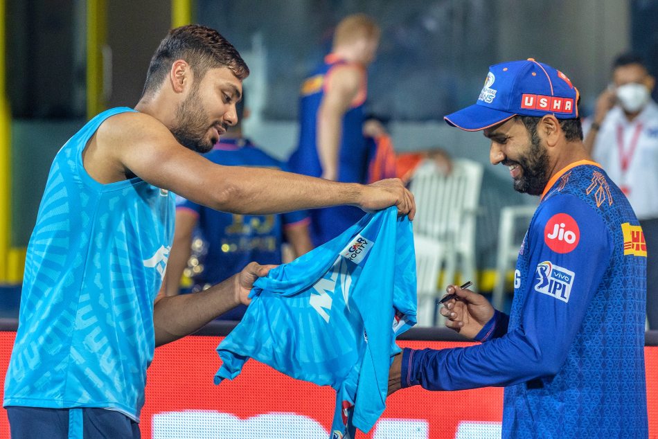 ಮುಂಬೈ ಇಂಡಿಯನ್ಸ್ ವಿರುದ್ಧ ಡೆಲ್ಲಿ ಕ್ಯಾಪಿಟಲ್ಸ್ 6 ವಿಕೆಟ್ ಜಯ ದಾಖಲಿಸಿತ್ತು. ಪರಸ್ಪರ ಎದುರಾಳಿಗಳಾಗಿ ಗೆದ್ದ ಬಳಿಕವೂ ಆವೇಶ್ ಖಾನ್ಗೆ ರೋಹಿತ್ ಶರ್ಮಾ ಮೇಲಿನ ಅಭಿಮಾನ ಕಡಿಮೆಯಾದಂತೆ ಕಾಣಿಸಲಿಲ್ಲ. ರೋಹಿತ್ ಬಳಿಗೆ ಬಂದ ಆವೇಶ್ ತನ್ನ ಜೆರ್ಸಿ ಮೇಲೆ ಶರ್ಮಾ ಸಹಿ ಹಾಕಿಸಿಕೊಂಡರು.