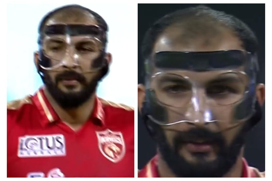 ಐದನೇ ಓವರ್ನಲ್ಲಿ ಬೌಲಿಂಗ್ಗೆ ಇಳಿದ ರಿಷಿ ಧವನ್ ವಿಭಿನ್ನ ರಕ್ಷಣಾ ಸಾಧನದ ಮೂಲಕ ಕಾಣಿಸಿಕೊಳ್ಳುವ ಮೂಲಕ ಎಲ್ಲರ ಆಶ್ಚರ್ಯಕ್ಕೆ ಕಾರಣರಾದ್ರು. ಇತ್ತೀಚಿನ ದಿನಗಳಲ್ಲಿ ಬ್ಯಾಟರ್ಗಳ ವಿಭಿನ್ನ ರೀತಿಯ ಶಾಟ್ ಪ್ರಯತ್ನ ಹಾಗೂ ಹೊಡಿ-ಬಡಿ ಆಟ ಹೆಚ್ಚಾಗಿರುವುದರಿಂದ ಬೌಲರ್ಸ್ ಹಾಗೂ ಅಂಪೈರ್ಸ್ ರಕ್ಷಣಾ ಸಾಧನಗಳನ್ನ ಬಳಸುವುದನ್ನ ಕಾಣಬಹುದಾಗಿದೆ.
