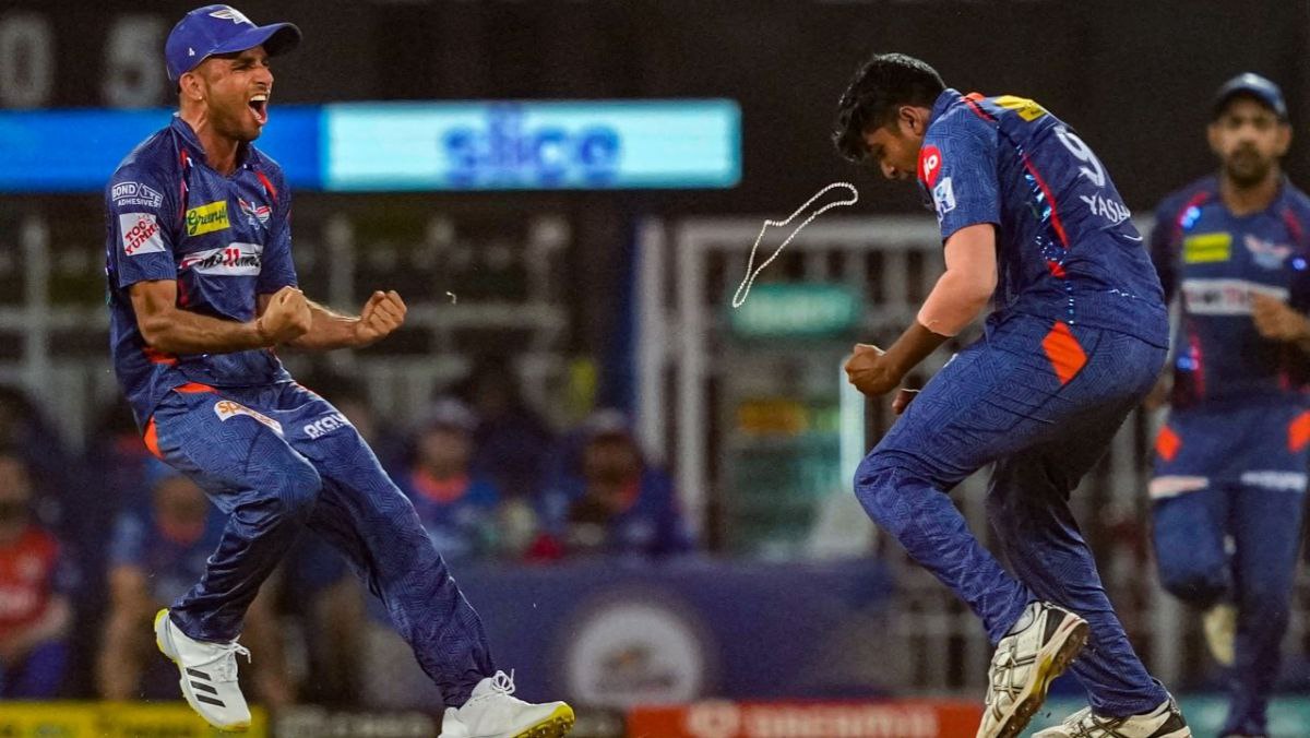 ಲಕ್ನೋ ಸೂಪರ್ ಜೈಂಟ್ಸ್ ಪರ ಯಶ್ ಠಾಕೂರ್ ಹಾಗೂ ರವಿ ಬಿಷ್ಣೋಯಿ ತಲಾ ಎರಡು ವಿಕೆಟ್ ಪಡೆದರೆ, ಮೊಹ್ಸಿನ್ ಖಾನ್ ಒಂದು ವಿಕೆಟ್ ಪಡೆದರು.