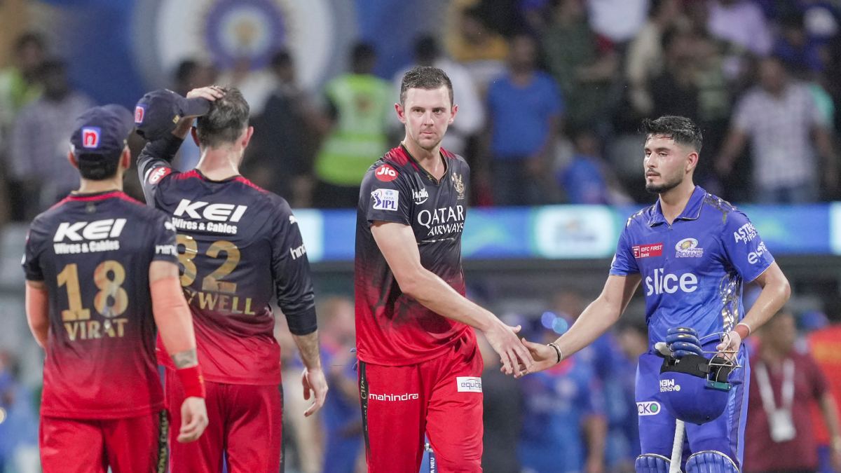 ಇನ್ನು ಆರ್ಸಿಬಿ ತಂಡ ಮುಂಬೈ ಇಂಡಿಯನ್ಸ್ ವಿರುದ್ಧದ ಸೋಲಿನಿಂದಿಗೆ ಅಂಕಪಟ್ಟಿಯಲ್ಲಿ 7ನೇ ಸ್ಥಾನಕ್ಕೆ ಕುಸಿದಿದೆ. ಸದ್ಯ ಆರ್ಸಿಬಿ 11 ಪಂದ್ಯಗಳನ್ನು ಆಡಿದ್ದು 5 ಗೆಲುವು ಹಾಗೂ 6 ಸೋಲು ಕಂಡಿದೆ. ಈ ಮೂಲಕ 10 ಅಂಕಗಳು ಆರ್ಸಿಬಿ ಖಾತೆಯಲ್ಲಿದೆ. ಇನ್ನು ಮುಂಬೈ ಇಂಡಿಯನ್ಸ್ ವಿರುದ್ಧದ ಹೀನಾಯ ಸೋಲಿನ ಬಳಿಕ ಆರ್ಸಿಬಿ ನೆಟ್ರನ್ರೇಟ್ನಲ್ಲಿ ಮತ್ತಷ್ಟು ಹಿಂದೆ ಬಿದ್ದಿದೆ. ಪ್ಲೇಆಫ್ ರೇಸ್ನಲ್ಲಿ ಆರ್ಸಿಬಿ ಹಿಂದುಳಿಯಲು ಇದು ಕೂಡ ಪ್ರಮುಖ ಕಾರಣ.