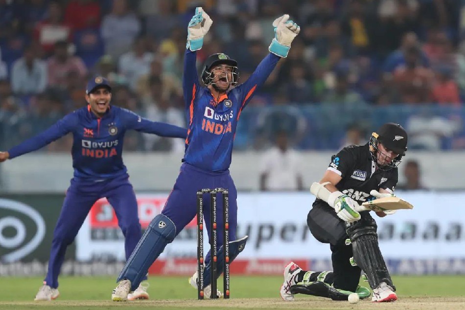 ಟಾಮ್ ಲಾಥಮ್ ಬ್ಯಾಟಿಂಗ್ ಮಾಡುವ ವೇಳೆ ಬಾಲ್ ಬೀಟ್ ಮಾಡಿ ಕ್ರೀಸ್ನಲ್ಲಿ ನಿಂತಿದ್ದಾಗ ಬೇಲ್ಸ್ ಕೆಳಗೆ ಬೀಳಿಸಿದ ಇಶಾನ್ ಕಿಶನ್, ಲಾಥಮ್ ಹಿಟ್ ವಿಕೆಟ್ ಆಗಿದ್ದಾರೆ ಎಂದು ಸ್ಕ್ವೇರ್ ಲೆಗ್ ಅಂಪೈರ್ಗೆ ಮನವಿ ಮಾಡಿದ್ದರು.