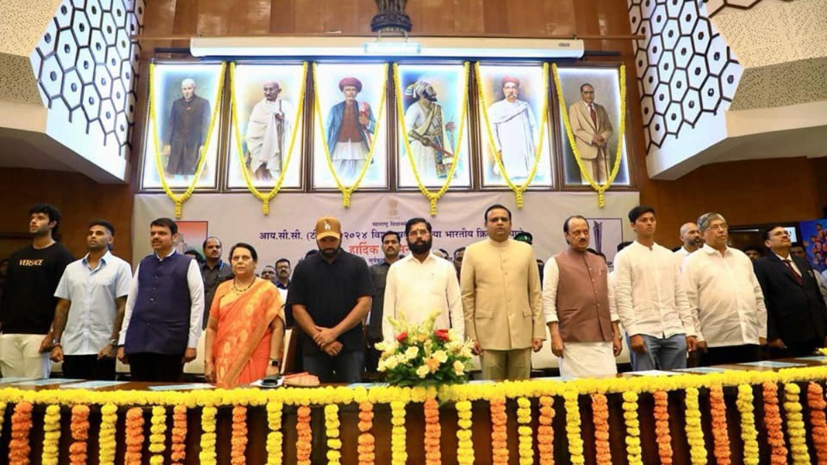 ಜುಲೈ 6 ಶನಿವಾರ, ಮಹಾರಾಷ್ಟ್ರ ರಾಜ್ಯ ಸರ್ಕಾರದ ವತಿಯಿಂದ ಭಾರತ ಟಿ20 ವಿಶ್ವಕಪ್ ವಿಜೇತ ಕ್ರಿಕೆಟ್ ತಂಡದ ಮುಂಬೈ ಮೂಲದ ನಾಯಕ ರೋಹಿತ್ ಶರ್ಮಾ, ಸೂರ್ಯಕುಮಾರ್ ಯಾದವ್, ಶಿವಂ ದುಬೆ ಮತ್ತು ಯಶಸ್ವಿ ಜೈಸ್ವಾಲ್ ಅವರನ್ನು ವಿಧಾನಸಭೆಯ ಸೆಂಟ್ರಲ್ ಹಾಲ್ನಲ್ಲಿ ಸನ್ಮಾನಿಸಿತು.