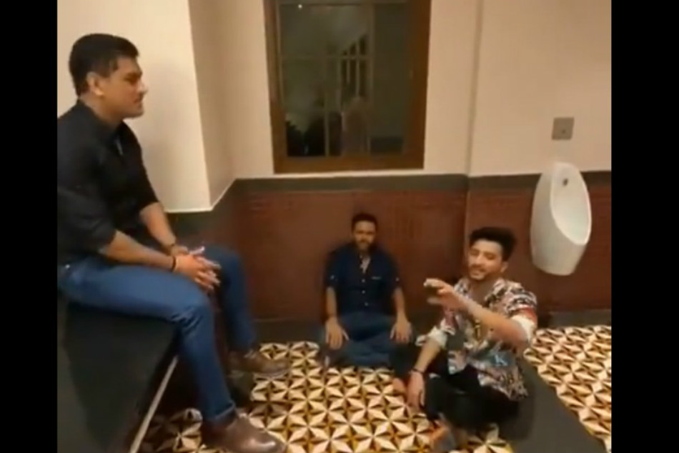ಫೈವ್ ಸ್ಟಾರ್ ಹೋಟೆಲ್ವೊಂದರ ಬಾತ್ರೂಮ್ನ ನೆಲದಲ್ಲಿ ಕುಳಿತು ಧೋನಿ ಗೆಳೆಯ ಬಾಲಿವುಡ್ ಗಾಯಕರಾದ ಇಶಾನ್ ಖಾನ್ ಹಾಡುತ್ತಿದ್ದರೆ ಧೋನಿ ಅಲ್ಲೆ ಮೇಲೆ ಕುಳಿತು ಆನಂದಿಸುತ್ತಿರುವುದು ವೀಡಿಯೋದಲ್ಲಿ ದಾಖಲಾಗಿದೆ.