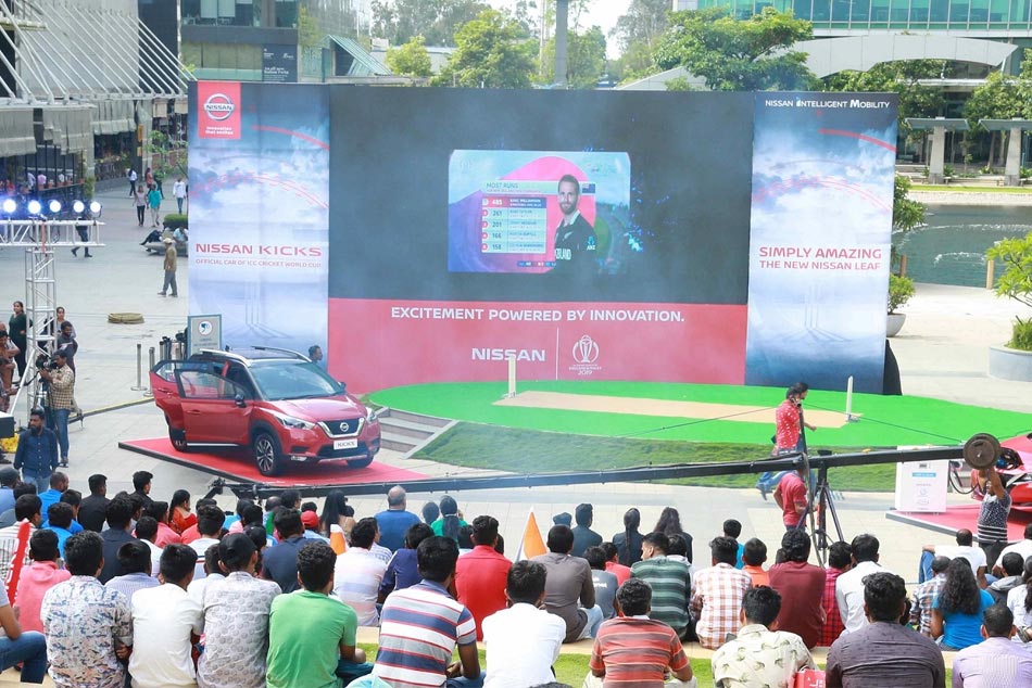 ಕ್ರಿಕೆಟ್ ಪ್ರೇಮಿಗಳಿಗೆ ನಿರಂತವಾಗಿ ಪಂದ್ಯವನ್ನು ವೀಕ್ಷಿಸುವಂತೆ ಮಾಡುವ ಸಲುವಾಗಿ ನಿಸಾನ್ ಲೀಫ್ನ ಬ್ಯಾಟರಿಗಳಿಂದ ನೇರ ಪ್ರಸಾರ ಮಾಡಿದ ದೊಡ್ಡ ಪರದೆಗೆ ವಿದ್ಯುತ್ ಸಂಪರ್ಕ ಪಡೆಯಲಾಗಿತ್ತು. ನಿಸಾನ್ನ ವಿನೂತನವಾದ ವೆಹಿಕಲ್ ಟು ಹೋಂ(ವಿ2ಎಚ್) ವ್ಯವಸ್ಥೆಯು ನಿಸಾನ್ ಮಾಲೀಕರಿಗೆ ತಮ್ಮ ಕಾರುಗಳನ್ನು ಚಾರ್ಜ್ ಮಾಡಿಕೊಳ್ಳಲು ಅವಕಾಶ ನೀಡುತ್ತದೆ.