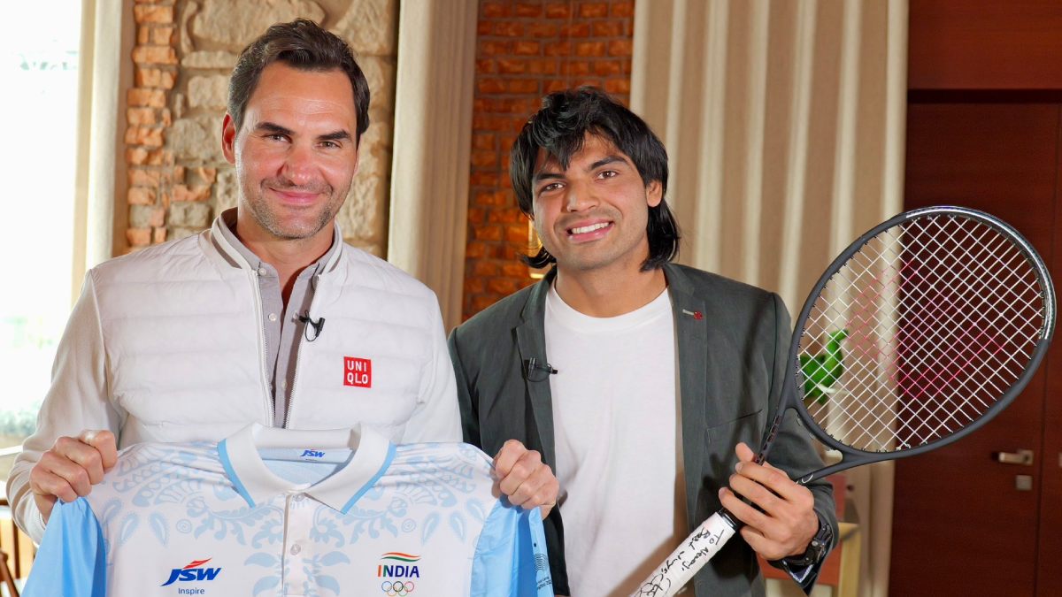 ರೋಜರ್ ನೀರಜ್ಗೆ ಹಸ್ತಾಕ್ಷರವಿರುವ ಟೆನಿಸ್ ರಾಕೆಟ್ ನೀಡಿದರೆ, ನೀರಜ್ ಏಷ್ಯನ್ ಗೇಮ್ಸ್ನಲ್ಲಿ ಧರಿಸಿದ್ದ ಭಾರತದ ಜೆರ್ಸಿಯನ್ನು ನೀಡಿ ಸಹಿ ಹಾಕಿದರು.