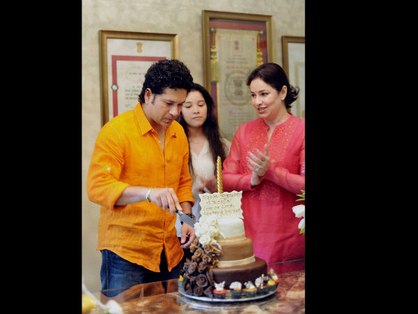 * ಚಿತ್ರದಲ್ಲಿ ಏ.24, 2015, ಪತ್ನಿ ಪುತ್ರಿ ಜೊತೆ ಕೇಕ್ ಕಟ್ ಮಾಡಿ ಹುಟ್ಟು ಹಬ್ಬ ಆಚರಿಸಿಕೊಂಡ ಸಚಿನ್