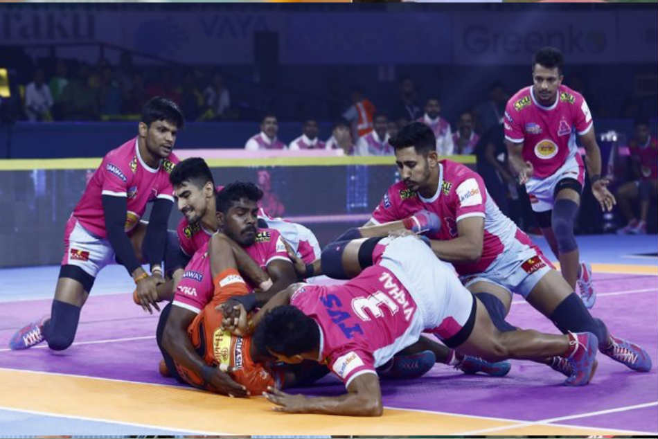ಹೈದರಾಬಾದ್, ಜುಲೈ 22: ಚೊಚ್ಚಲ ಆವೃತ್ತಿಯ ಪ್ರೊ ಕಬಡ್ಡಿ ಲೀಗ್ ಚಾಂಪಿಯನ್ಸ್ ಜೈಪುರ್ ಪಿಂಕ್ ಪ್ಯಾಂಥರ್ಸ್ ತಂಡದ ಅಧಿಕಾರಯುತ ಪ್ರದರ್ಶನದ ಎದುರು ತಬ್ಬಿಬ್ಬಾದ ಮಾಜಿ ಚಾಂಪಿಯನ್ಸ್ ಯು ಮುಂಬಾ ತಂಡ ಹೀನಾಯ ಸೋಲುಂಡಿದೆ.
