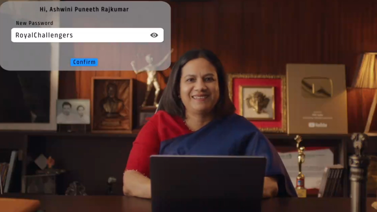 ಡಾ. ರಾಜ್ಕುಮಾರ್ ಅವರ ಫೋಟೋ ಮತ್ತು ಪುನೀತ್ ರಾಜ್ಕುಮಾರ್ ಅವರ ವಿಗ್ರಹವನ್ನು ಒಳಗೊಂಡಿರುವ ವಿಡಿಯೋದಲ್ಲಿ, ಅಶ್ವಿನಿ ಪೋಸ್ಟರ್ ನೋಡುತ್ತಾ ಕ್ಯಾಮೆರಾಗೆ ನಗುತ್ತಾಳೆ. ಲ್ಯಾಪ್ಟಾಪ್ನಲ್ಲಿ ರಾಯಲ್ ಚಾಲೆಂಜರ್ಸ್ ಬೆಂಗಳೂರು ಎಂಬ ಪಾಸ್ವರ್ಡ್ ಟೈಪ್ ಮಾಡುವಾಗ ರಾಂಗ್ ಎಂದು ತೋರಿಸುತ್ತದೆ.