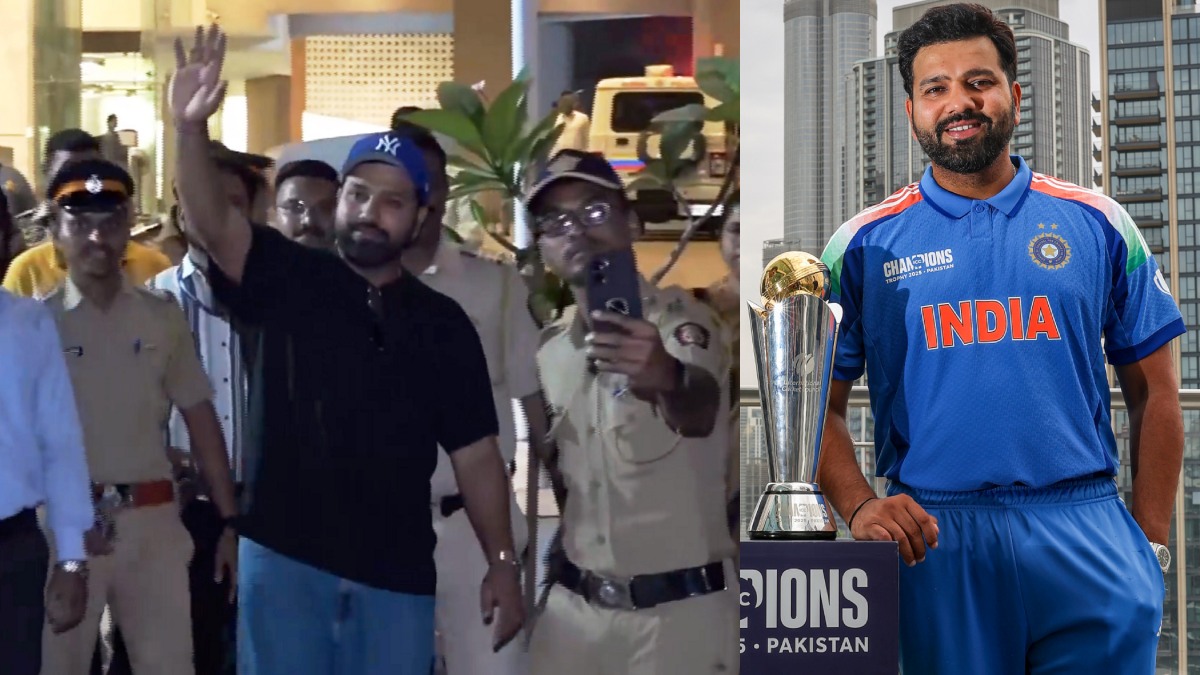 ನೀಲಿ ಜೀನ್ಸ್ ಪ್ಯಾಂಟ್, ಕಪ್ಪು ಬಣ್ಣ ಟಿ ಶರ್ಟ್ ತೊಟ್ಟ ರೋಹಿತ್ ಶರ್ಮಾ ತಲೆಯ ಮೇಲೆ ನೀಲಿ ಬಣ್ಣದ ಕ್ಯಾಪ್ ಧರಿಸಿದ್ದರು. ಏರ್ಪೋರ್ಟ್ನಿಂದ ಹೊರ ಬರುತ್ತಲೇ ಅಭಿಮಾನಿಗಳತ್ತ ಕೈ ಬೀಸಿದ ರೋಹಿತ್ ನಗು ಮುಖದಿಂದ ತಮ್ಮ ಕಾರು ಏರಿದರು. ಇವರನ್ನು ಕಂಡು ಅಭಿಮಾನಿಗಳು ಘೋಷಣೆಗಳನ್ನು ಕೂಗಿದರು. ಚಾಂಪಿಯನ್ಸ್ ಟ್ರೋಫಿ ವಿಜೇತ ಆಟಗಾರರು ಈಗ ತವರಿನತ್ತ ಮುಖ ಮಾಡಿದ್ದಾರೆ.