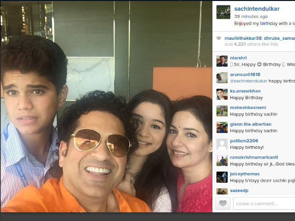 ಫೋಟೋ ವಿಡಿಯೋ ಹಂಚಿಕೆಗಾಗಿ ಇರುವ ಇನ್ಸ್ಟ್ರಾಗ್ರಾಮ್ ವೆಬ್ ತಾಣದಲ್ಲಿ ಕ್ರಿಕೆಟ್ ದೇವರ ಅಕೌಂಟ್ ಓಪನ್ ಆಗಿದೆ. ಫ್ಯಾಮಿಲಿ ಜೊತೆ ಲಂಚ್ ಮುಗಿಸಿಕೊಂಡು ಸಂಜೆ ವೇಳೆಗೆ ಸೆಲ್ಫಿ ವಿತ್ ಫ್ಯಾಮಿಲಿ ತೆಗೆದ ಫೋಟೋ ಶೇರ್ ಮಾಡಿದ್ದಾರೆ.[ಸಚಿನ್ 42ರ ಹುಟ್ಟುಹಬ್ಬಕ್ಕೆ 42 ಸಾಧನೆಗಳ ಮೆಲುಕು]