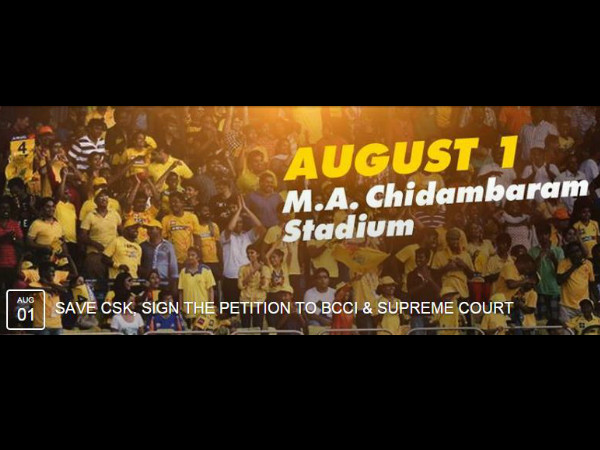 ಚೆನ್ನೈನ ಚೆಪಾಕ್ ಸ್ಟೇಡಿಯಂನಲ್ಲಿ ಭಾರತ ಎ ಹಾಗೂ ಆಸ್ಟ್ರೇಲಿಯಾ ಎ ನಡುವೆ ನಾಲ್ಕು ದಿನಗಳ ಪಂದ್ಯ ಆರಂಭವಾಗಿದೆ. ಆಗಸ್ಟ್ 1 ಹಾಗೂ 2 ರಂದು ಪಂದ್ಯಕ್ಕೆ ಬರುವಾಗ ಎಲ್ಲರೂ ಹಳದಿ ಟೀಶರ್ಟ್ (ಸಿಎಸ್ ಕೆ ಜರ್ಸಿ) ಧರಿಸಿ ಬನ್ನಿ ಎಂದು ಬುಧವಾರ ಸೇವ್ ಸಿಎಸ್ ಕೆ ಪುಟದಲ್ಲಿ ಬರೆಯಲಾಗಿದೆ.