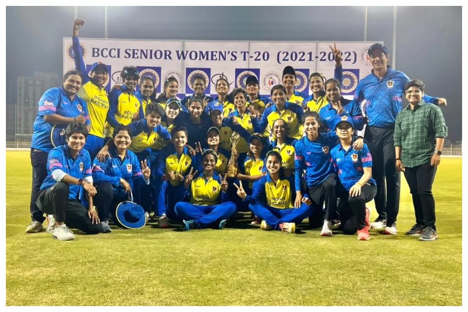 ಹಿರಿಯ ಮಹಿಳಾ ಟಿ20 ಚಾಂಪಿಯನ್ಶಿಪ್ನಲ್ಲಿ ಮಹಾರಾಷ್ಟ್ರ ವಿರುದ್ಧ ಗೆಲುವು ಸಾಧಿಸಿದ ರೈಲ್ವೇಸ್ ವನಿತೆಯರು ಮತ್ತೊಮ್ಮೆ ಟೈಟಲ್ ಗೆಲ್ಲುವ ಮೂಲಕ ಅಬ್ಬರಿಸಿದ್ದಾರೆ. ಮಹಾರಾಷ್ಟ್ರ ನಾಯಕಿ ಸ್ಮೃತಿ ಮಂದಾನ ಸಿಡಿಸಿದ 84ರನ್ಗಳು ವ್ಯರ್ಥವಾಗಿದ್ದು, ರೈಲ್ವೇಸ್ ವನಿತೆಯರು ಏಳು ವಿಕೆಟ್ಗಳಿಂದ ಟೂರ್ನಿ ಜಯಿಸಿದ್ದಾರೆ.