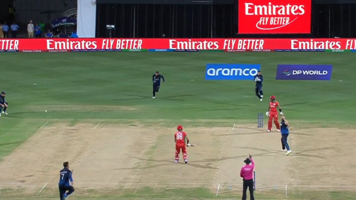 ಒಮನ್ ತಂಡದ ಬ್ಯಾಟಿಂಗ್ ಇನ್ನಿಂಗ್ಸ್ ಆರಂಭಿಸಿದ ಕಶ್ಯಪ್ ಪ್ರಜಾಪತಿ ಮತ್ತು ನಸೀಮ್ ಖುಷಿ ಉತ್ತಮ ಅರಂಭ ನೀಡಲು ವಿಫಲರಾದರು. ತಂಡದ ಮೊತ್ತ 2 ರನ್ ಆಗುವಷ್ಟರಲ್ಲಿ ಇಬ್ಬರು ವಿಕೆಟ್ ನೀಡಿ ಪೆವಿಲಿಯನ್ ಸೇರಿದರು. ನಂತರ ಬಂದ ನಾಯಕ ಅಕಿಬ್ ಇಲ್ಯಾಸ್ ಡಕ್ಗೆ ಔಟಾದರು.