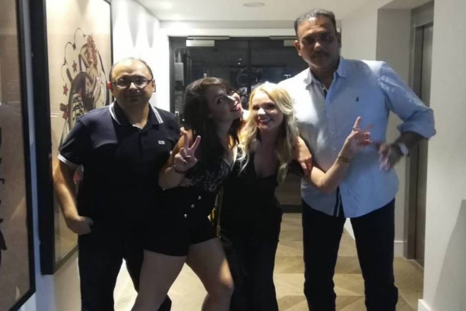 ಅಂದಹಾಗೆ ಟೀಮ್ ಇಂಡಿಯಾದ ಈ ಬಹು ನಿರೀಕ್ಷಿತ ಪಂದ್ಯ ಆರಂಭಕ್ಕೂ ಮುನ್ನ ತಂಡದ ಮುಖ್ಯ ಕೋಚ್ ರವಿ ಶಾಸ್ತ್ರಿ ನೆಟ್ಟಿಗರಿಂದ ಭಾರಿ ಟ್ರೋಲ್ಗೆ ಗುರಿಯಾಗಿದ್ದಾರೆ. ಇಬ್ಬರು ಮಹಿಳೆಯರೊಟ್ಟಿಗೆ ಭಾರತ ತಂಡದ ಮಾಜಿ ಆಲ್ರೌಂಡರ್ ಹಾಗೂ ಹಾಲಿ ಮುಖ್ಯ ಕೋಚ್ 'ಹ್ಯಾಂಡ್ಸಮ್ ಹಂಕ್' ರೀತಿಯಲ್ಲಿ ಪೋಸ್ ನೀಡಿರುವ ಫೋಟೊ ಸಾಮಾಜಿಕ ಜಾಲತಾಣಗಳಲ್ಲಿ ವೈರಲ್ ಆಗಿದೆ.