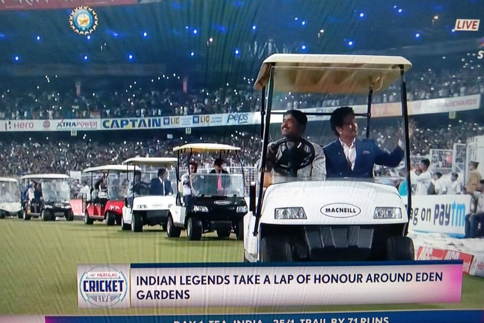 ಇಂದಿನ ಪಂದ್ಯದಲ್ಲಿ ಕ್ರಿಕೆಟ್ನ ದಿಗ್ಗಜರು ಭಾಗಿಯಾಗಿದ್ದರು. ಈ ವಿಶೇಷ ಸಂದರ್ಭದಲ್ಲಿ ಕಪಿಲ್ದೇವ್, ಸಚಿನ್ ತೆಂಡೂಲ್ಕರ್ ಸೇರಿದಂತೆ ಮಾಜಿ ಕ್ರಿಕೆಟಿಗರು ಈಡನ್ ಗಾರ್ಡನ್ ಮೈದಾನಕ್ಕೆ ವಾಹನದ ಮೂಲಕ ಸುತ್ತುಹಾಕಿ ಅಭಿಮಾನಿಗಳಿಂದ ಗೌರವ ವಂದನೆ ಸ್ವೀಕಾರ ಮಾಡಿದರು.
