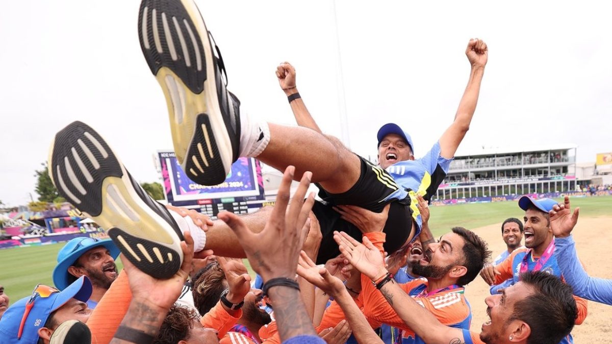 ರಾಹುಲ್ ದ್ರಾವಿಡ್ ತಮ್ಮ ಸಾಧನೆಗೆ ಚಾಂಪಿಯನ್ಸ್ ಪದಕದೊಂದಿಗೆ ಪರಿಪೂರ್ಣ ವಿದಾಯ ಹೇಳಲು ಸಂಭ್ರಮಾಚರಣೆಗಳು ನಡೆದವು. ರಾಹುಲ್ ದ್ರಾವಿಡ್ ಅವರು ಟಿ20 ವಿಶ್ವಕಪ್ 2024ರ ಟ್ರೋಫಿಯನ್ನು ಕೈಗೆತ್ತಿಕೊಂಡಾಗ ಅವರ ಅನಿಮೇಟೆಡ್ ನೋಡಲು ಎರಡು ಕಣ್ಣುಗಳು ಸಾಲದಾಗಿದ್ದವು.