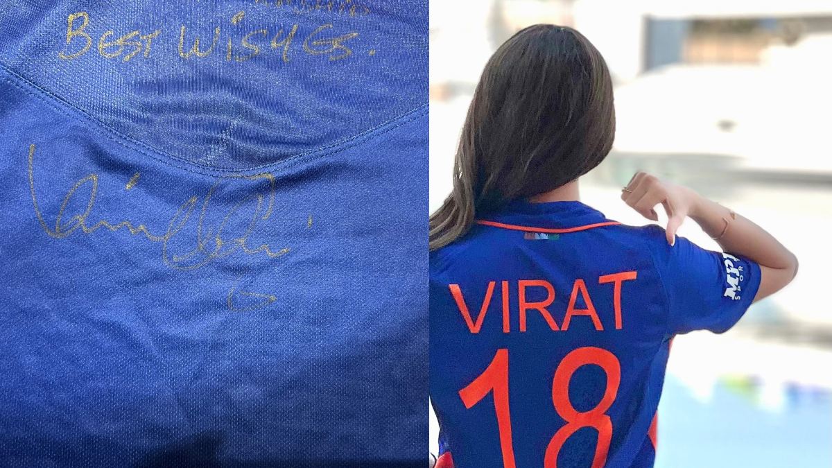 ಇಂತಹ ಬೆಲೆಕಟ್ಟಲಾಗದ ಅವಿಸ್ಮರಣೀಯ ಜೆರ್ಸಿಯನ್ನು ವಿರಾಟ್ ಕೊಹ್ಲಿಯಿಂದ ಉಡುಗೊರೆಯಾಗಿ ಪಡೆದ ಅದೃಷ್ಟಶಾಲಿ ಅಭಿಮಾನಿ ವಾಜ್ಮಾ ಅಯೂಬಿ. ಜೆರ್ಸಿಯ ಹಿಂಭಾಗದಲ್ಲಿ ವಿರಾಟ್ ಹಸ್ತಾಕ್ಷರ ಸಹ ಇದೆ.