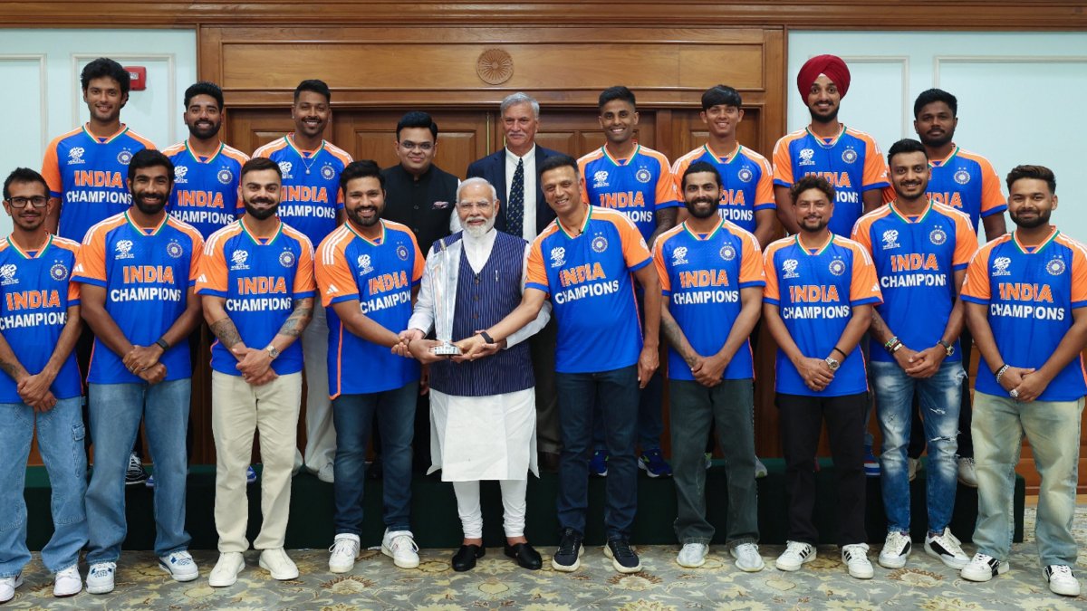 ಫೈನಲ್ ಪಂದ್ಯದ ನಂತರ ಬೆರಿಲ್ ಚಂಡಮಾರುತದ ಕಾರಣ, ಮೂರು ದಿನಗಳ ಕಾಲ ಬಾರ್ಬಡೋಸ್ನಲ್ಲೇ ಸಿಲುಕಿಕೊಂಡಿದ್ದ ಭಾರತ ತಂಡವು, ಗುರುವಾರ ಬೆಳಿಗ್ಗೆ 6:05 ಕ್ಕೆ ನವದೆಹಲಿಗೆ ಬಂದಿಳಿಯಿತು. ನಂತರ ಭಾರತ ಕ್ರಿಕೆಟ್ ತಂಡವು ನಂ. 7, ಲೋಕ ಕಲ್ಯಾಣ ಮಾರ್ಗದಲ್ಲಿ ಪ್ರಧಾನಮಂತ್ರಿ ನಿವಾಸದಲ್ಲಿ ಪ್ರಧಾನಿ ನರೇಂದ್ರ ಮೋದಿ ಅವರನ್ನು ಬೆಳಿಗ್ಗೆ 11 ಗಂಟೆಗೆ ಭೇಟಿಯಾಯಿತು.