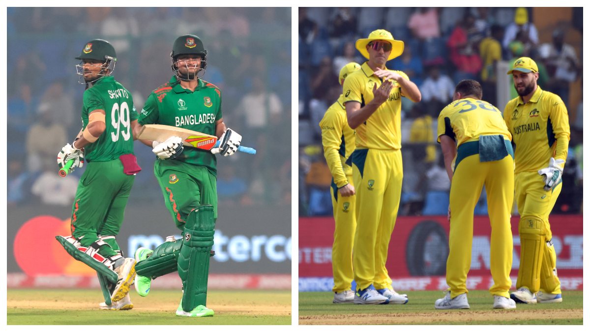 ವಿಶ್ವಕಪ್ ಟೂರ್ನಿ ಲೀಗ್ ಹಂತದ ಕೊನೆಯ ಮೂರು ಪಂದ್ಯಗಳು ಮಾತ್ರವೇ ಬಾಕಿಯಿದೆ. ಪುಣೆಯ ಮಹಾರಾಷ್ಟ್ರ ಕ್ರಿಕೆಟ್ ಅಸೊಸಿಯೇಶನ್ ಕ್ರೀಡಾಂಗಣದಲ್ಲಿ ಆಸ್ಟ್ರೇಲಿಯಾ ಹಾಗೂ ಬಾಂಗ್ಲಾದೇಶ ತಂಡಗಳು ಈ ಪಂದ್ಯದಲ್ಲಿ ಮುಖಾಮುಖಿಯಾಗಿದೆ. ಈ ಪಂದ್ಯದಲ್ಲಿ ಆಸ್ಟ್ರೇಲಿಯಾ ಟಾಸ್ ಗೆದ್ದು ಮೊದಲಿಗೆ ಬೌಲಿಂಗ್ ಆಯ್ಕೆ ಮಾಡಿಕೊಂಡಿದೆ. ಹೀಗಾಗಿ ಬಾಂಗ್ಲಾದೇಶ ತಂಡ ಆರಂಭದಲ್ಲಿ ಬ್ಯಾಟಿಂಗ್ ನಡೆಸುವ ಸವಾಲು ಪಡೆದುಕೊಂಡಿದೆ.